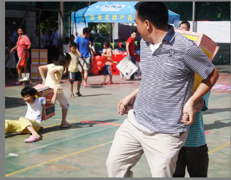 业主都是全家出动,爸爸妈妈带着儿子女儿、爷爷奶奶带着孙子孙女,每个家庭都积极得参与各项比赛,奋勇争先。